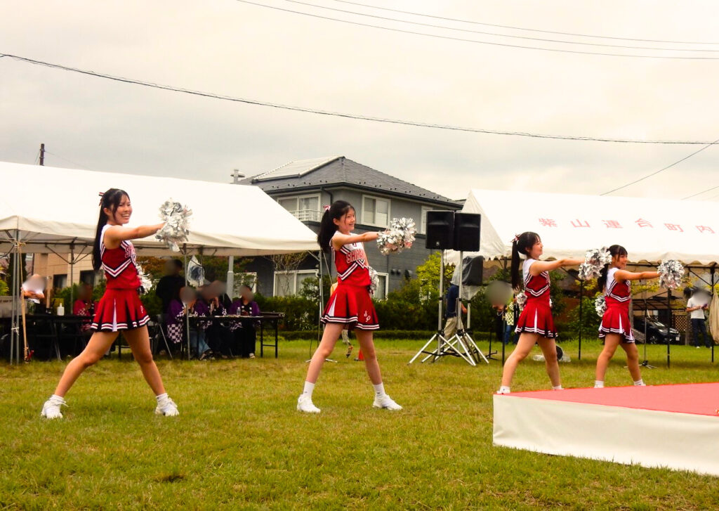 先日開催された「紫山秋まつり」において、本校中高チアリーダー部がパフォーマンスを披露しました。小学生も一緒に地域の皆さまへ笑顔と元気を届け、会場を盛り上げました。