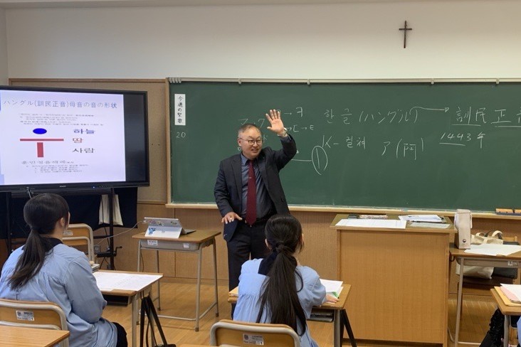 高校Ⅲ年生対象 国際理解授業 ~韓国文化の学び~ 投稿日: 2025年10月24日2025年10月24日 投稿者: サイト管理者 高校Ⅲ年生対象の「国際理解」の授業では、仙台韓国教育院 院長の朴慶羲(パク・ギョンヒ)様をお迎えし、韓国の文化や歴史、ハングル語の講座などのワークショップを行いました。 授業では、K-カルチャーとしてK-POPや韓流ドラマも紹介していただき、韓国の文化をより身近に感じる貴重な時間となりました。 この授業をきっかけに、生徒たちが他国の文化への関心をさらに深めてくれることを願っています。