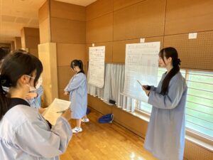 これまでの総合的な探究の時間で、それぞれのテーマに沿って、個人・グループ・学年で探究してきたものを中間発表する形で行われました。