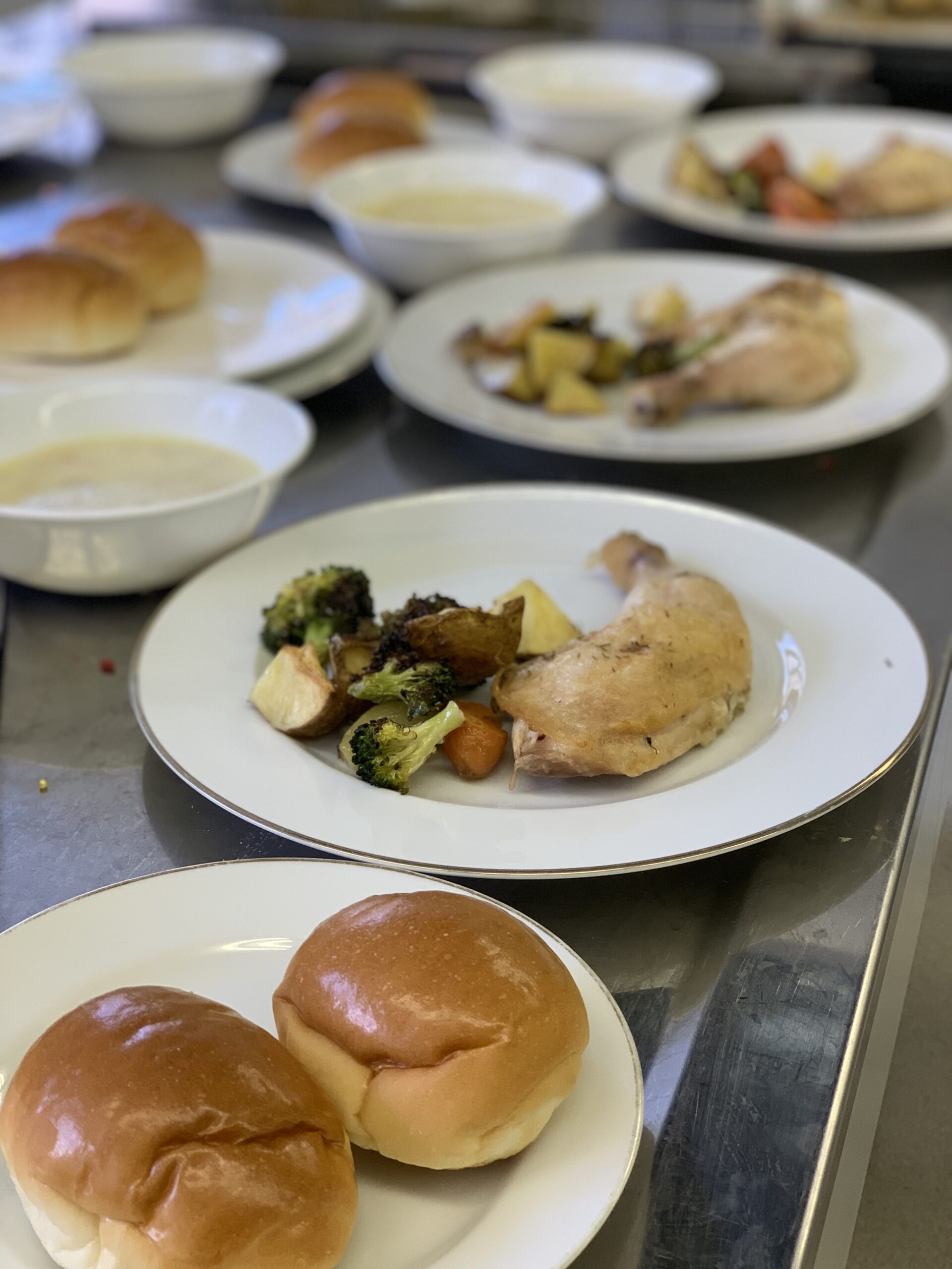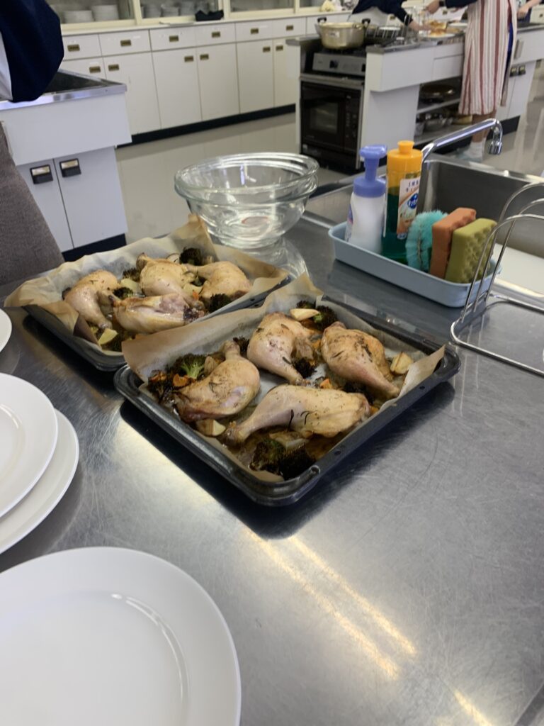 ローストチキンは大きな鶏もも肉に野菜を添え、オーブンでじっくり焼き上げる本格的な一品となりました。