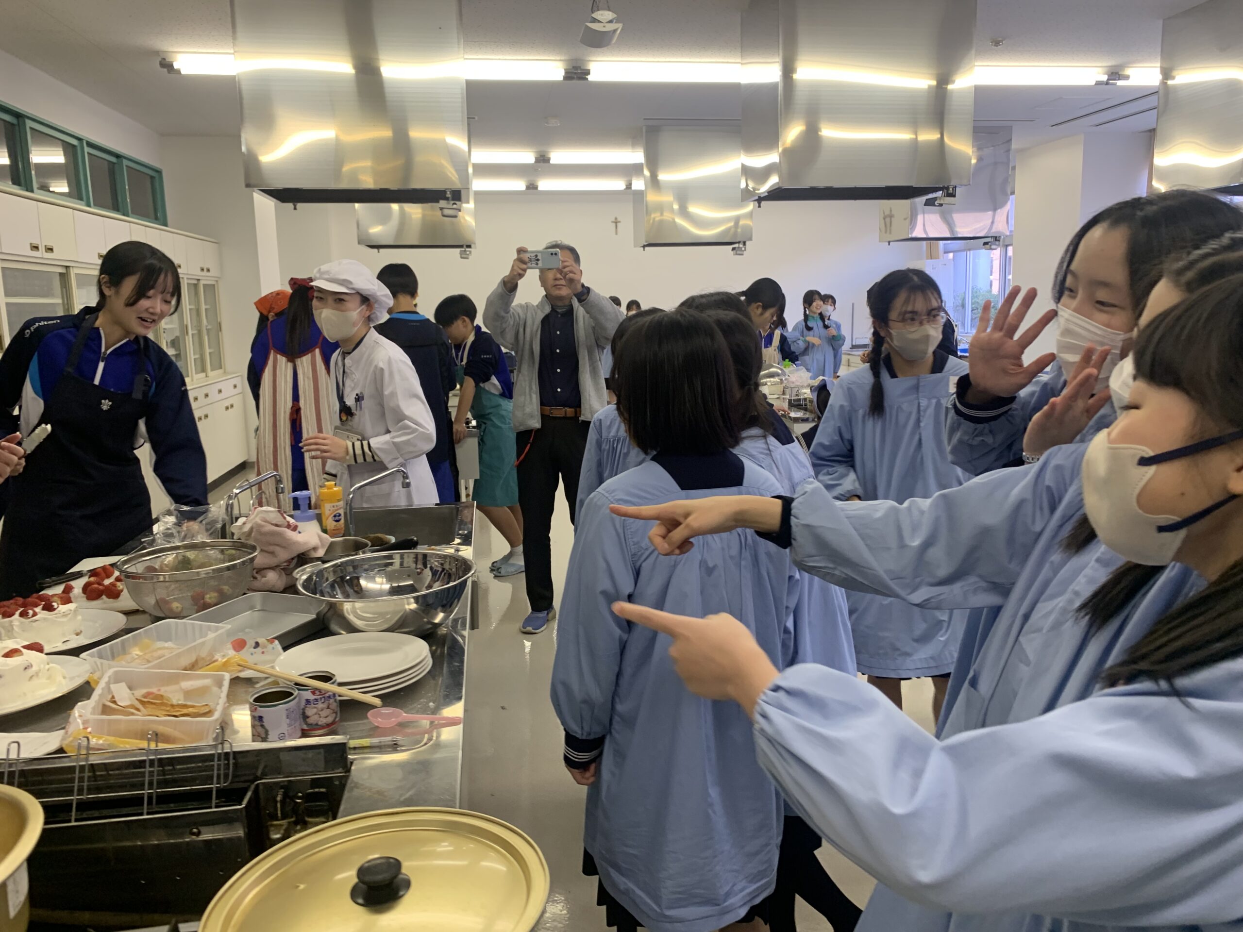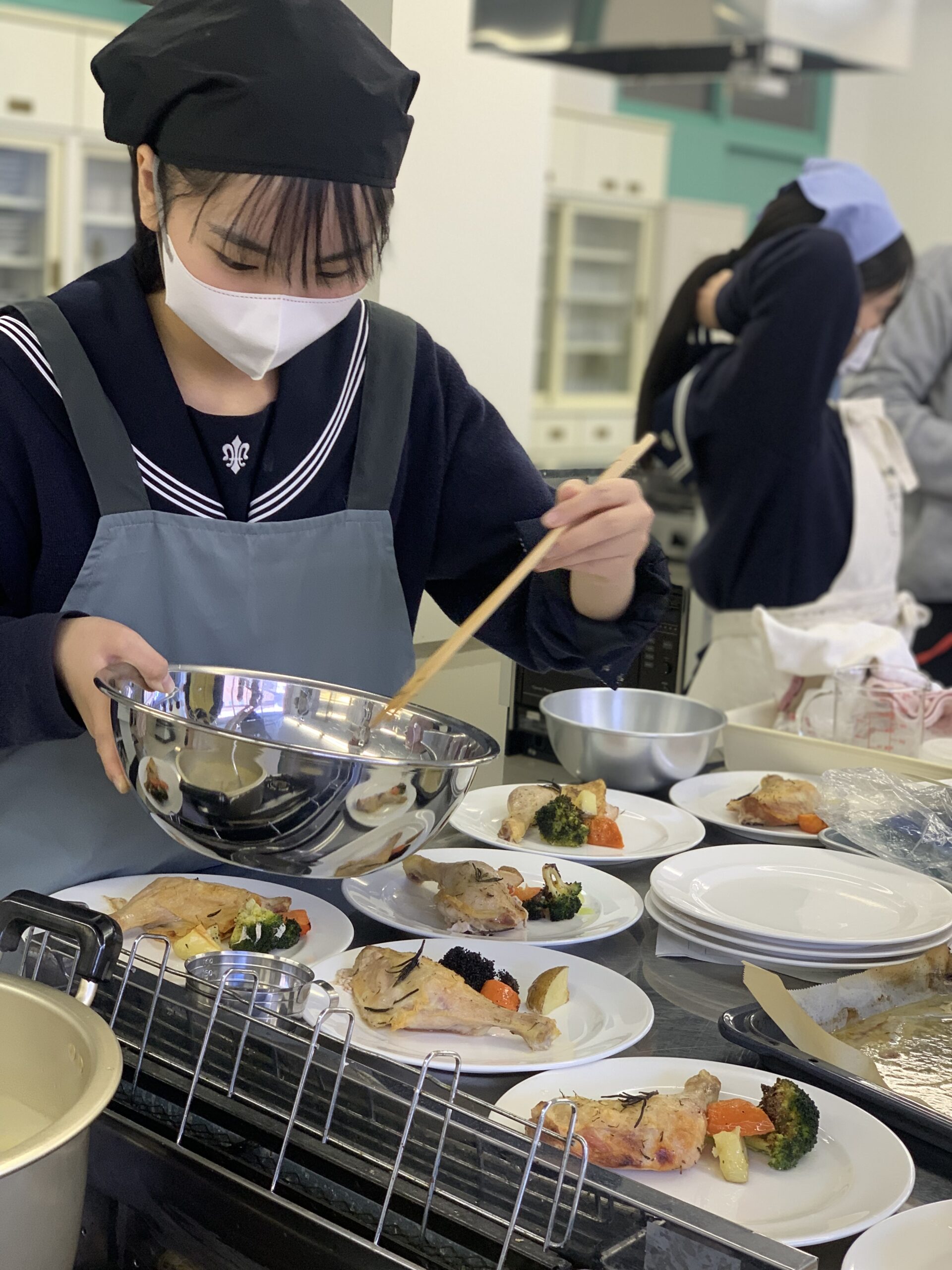 今回は併設小学校6年生を招き、料理をふるまう特別な実習です。