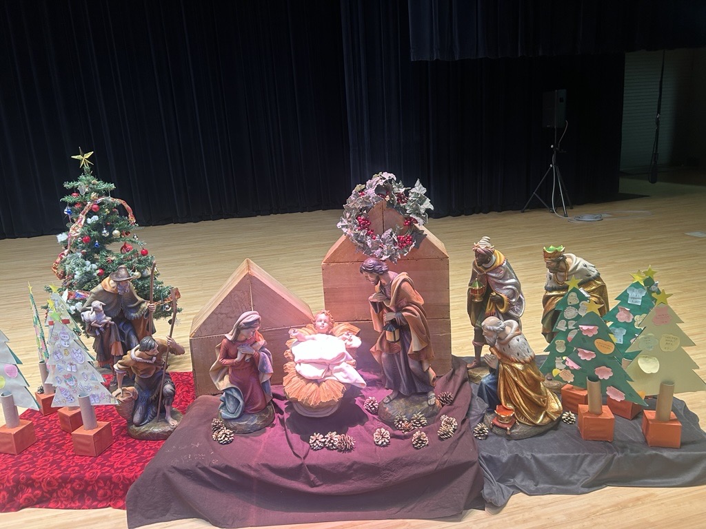 12月22日(月)は冬休み前行事、クリスマス会が行われました。小中高の児童・生徒の皆さんがレジナパーチスホールに集合し、厳かな雰囲気の中、クリスマスミサが行われました。
