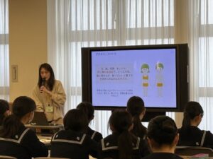 また、女性の身体や心の変化、生理についても、医師である卒業生の産科医の先生方から、専門的かつ丁寧に教えていただいています。身近な先輩でもある先生方のお話は、生徒にとって安心感のある学びの時間となっています。