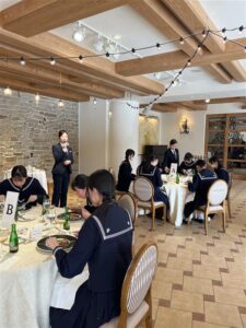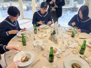 テーブルマナーなんて学ぶ機会がなかなかないと思いますが、ホテルの方々にアドヴァイスをいただきながら、お食事をいただき、とても有意義な時間となったようです。